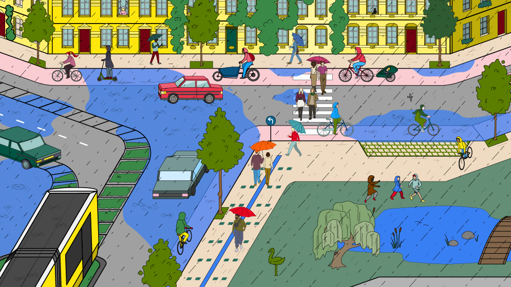 Krass, ist das nass! Auch in Berlin kommt es regelmäßig zu Hochwasser, das Straßen oder Keller überflutet und dadurch Gebäude, Infrastrukturen oder im Extremfall Personen schädigen kann.